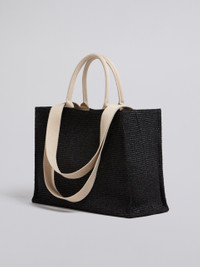 LARGE BLACK RAFFIA TOTE BAG