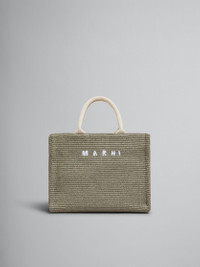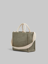 GREEN RAFFIA-EFFECT SMALL TOTE BAG