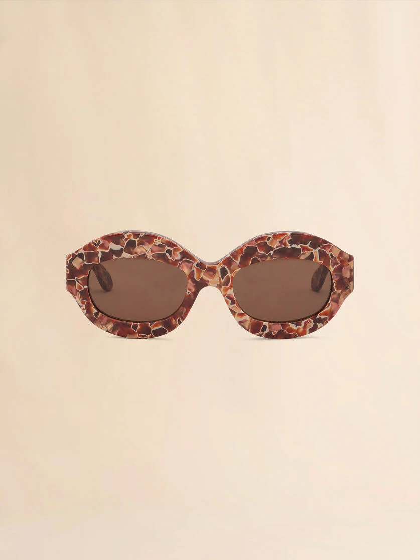 Ik Kil Cenote sunglasses, crafted from acetate with a natural-inspired patterned finish. Sleek oval silhouette. Embellished with gold metal Marni lettering on the temple. Made in Italy DETAILS COMPOSITION Material: 100% Acetate