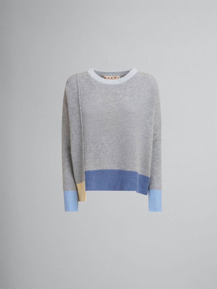 Long-sleeved jumper knitted from pure cashmere. Colour-block design with multi-coloured contrast trims. Loose fit with asymmetrical hem. Hand-stitched Marni mending logo on the back neck. Made in Italy MODEL GCMD0504Q0UFX385ICN15 FIT The model is 5' 11''. The model is wearing size 40 IT. COMPOSITION 100% WSK