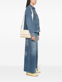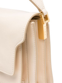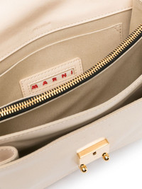 medium Trunk Soft shoulder bag Marni’s iconic Trunk bag is inspired by the eponymous founder’s enthusiasm for cycling and takes its design cues from vintage bike packs. This cream-white Soft version is crafted from supple tumbled leather with a signature push-lock fastening and logo-jacquard shoulder strap. Highlights - Cream white - Calf leather - Smooth grain - Tonal stitching - Logo-engraved gold-tone hardware - Foldover top - Push-lock fastening - Adjustable logo-jacquard shoulder strap - Partitioned compartment - Internal patch pocket - Internal zip-fastening pocket - Internal logo patch - Canvas lining - Gold-tone hardware - This piece comes complete with a protective dust bag. - This piece comes with a certificate of authenticity. Made in Italy Composition Outer: Calf Leather 100% SIZE & FIT Model measurements Height 5 ft 9 in(1.75 m) Bust/Chest 32.67 in(83 cm) Hips 38.58 in(98 cm) Waist 26.77 in(68 cm) Measurement DEPTH 3.54 in(9 cm) HEIGHT 6.69 in(17 cm) STRAP 23.62 in(60 cm) WIDTH 9.05 in(23 cm)