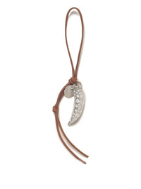 leather crystal-embellished keyring Highlights - Brown - Calf leather - Knotted leather strap - Crystal embellishment - Tooth charm - Logo tag Made in Italy Composition Calf Leather 100%, Brass 95%, glass 5%