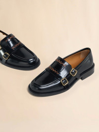 BLACK LEATHER BAMBI 3.0 LOAFER WITH DOUBLE BUCKLE