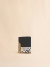 Bifold wallet made from saffiano leather with python-print panels. Snap button fastening. Internal coin pocket with snap button fastening, note compartment and four card slots. Golden hardware and gold printed Marni logo on the front. . This product is made using leather from a Leather Working Group medalled tannery. LWG supports more responsible leather manufacturing across the globe. Made in Italy MODEL PFMOQ14Q14P8674ZO997