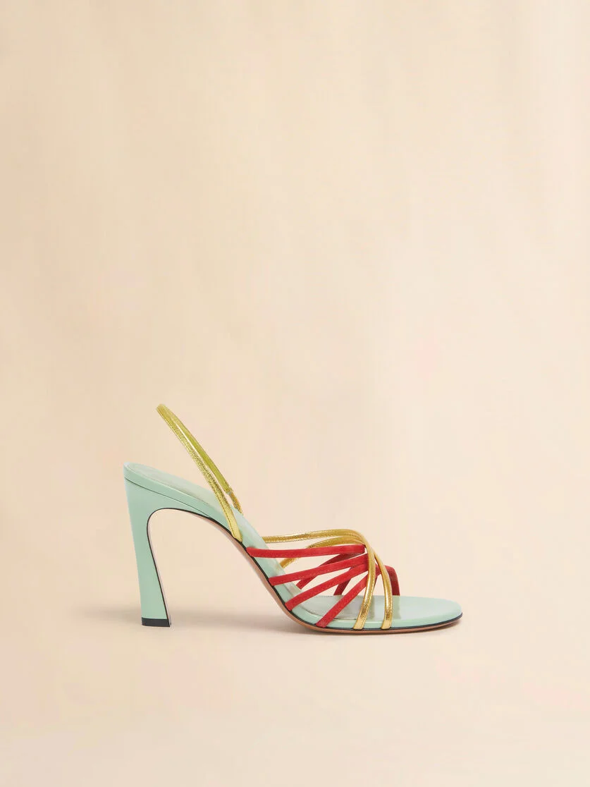 Sandal made from polished calfskin, embracing the foot in thin suede and metallic leather straps. Round-toe silhouette with a slingback strap. Slingback strap. Leather sole and soft insole with Marni logo. Made in Italy MODEL SAMS023508P8342ZO938 COMPOSITION Upper: 100% Calf Leather - Contrast: 100% Goat Leather - Contrast: 100% Ovine Leather - Lining: 100% Goat Leather - Inside: 100% Goat Leather - Sole: 100% Calf Leather