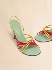 GREEN RED AND GOLD SUEDE AND METALLIC LEATHER NEW WAVE SANDAL