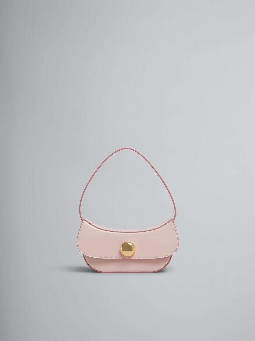Butterfly hobo bag crafted from shiny brushed leather. Small size. Semi-rigid design with harmonious curved silhouette. Maxi metal stud twist lock, engraved with Marni lettering. Suede lining and inside card slot. Made in Italy MODEL SBMP0189U0P794300C29 COMPOSITION Body: 100% Ovine Leather - Contrast: 100% Calf Leather - Lining: 100% Calf Leather - Lining: 100% Calf Leather - Metallic Parts: 100% Brass