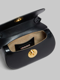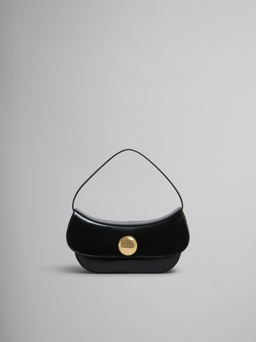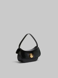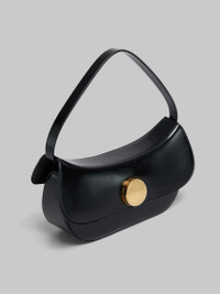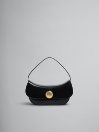 Butterfly hobo bag crafted from shiny brushed leather. Medium size. Semi-rigid design with harmonious curved silhouette. Maxi metal stud twist lock, engraved with Marni lettering. Suede lining and inside card slot. Made in Italy MODEL SBMP0188U0P794300N99 COMPOSITION Body: 100% Ovine Leather - Contrast: 100% Calf Leather - Lining: 100% Calf Leather - Lining: 100% Calf Leather - Metallic Parts: 100% Brass