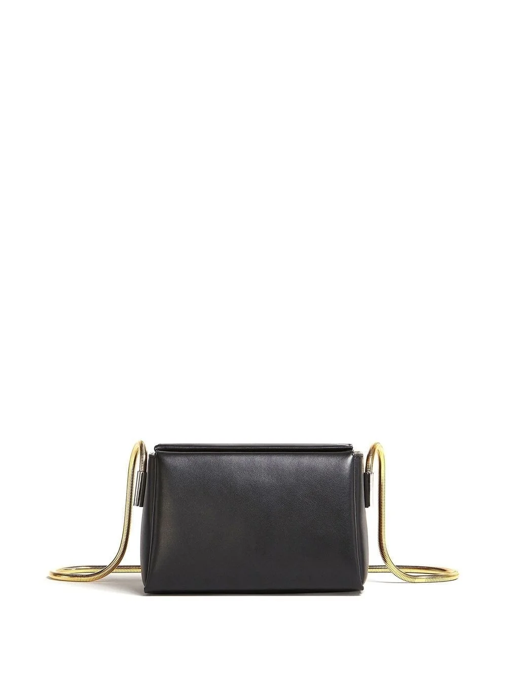leather shoulder bag Crafted from smooth black leather for a timeless feel, this bag from Marni is suspended from a gold-tone shoulder strap. The top magnetic closure opens to reveal a main compartment and an internal card slot. Made in Italy Composition Outer: Bovine Leather (top grain) 100% SIZE & FIT Measurement STRAP 22.44 in(57 cm) DEPTH 2.75 in(7 cm) WIDTH 7.08 in(18 cm) HEIGHT 4.72 in(12 cm)