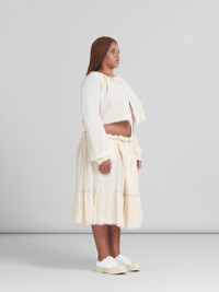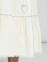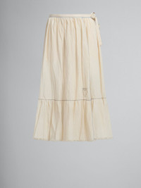 Knee-length wrap skirt made from lightweight organic cotton cheesecloth with an authentic creased texture. Side tie closure and frayed flounce hem, edged with contrast stitching. Hand-stitched Marni mending logo with heart detail. Made in Italy MODEL GOMA0641S0UTC38200W11 COMPOSITION 100% CO1