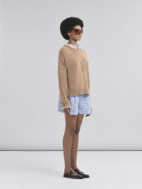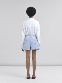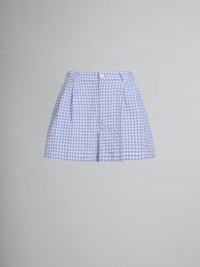Technical cotton seersucker checked shorts, with a flared line, regular waist, and double pleats on the front. Side pockets and welt pockets on the back. Zip and button closure. Finished with Marni Symbol hand embroidered on the side. MODEL PAMA0549S0UTN929CHB21 FIT The model is 5' 9''. The model is wearing size 40 IT. COMPOSITION Primary Fabric: 51% Polyamide Woven 49% Cotton Woven - Pocket Lining: 100% Cotton Woven