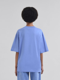 LIGHT BLUE JERSEY COTTON T-SHIRT WITH MARNI SCRIBBLED LOGO