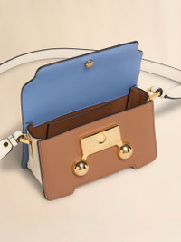 LIGHT BLUE, LIGHT BROWN AND WHITE LEATHER TRUNKAROO MINI SHOULDER BAG