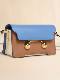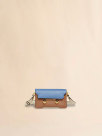 Trunkaroo rectangular mini shoulder bag crafted from calfskin leather. Colour block design. Front flap with magnetic closure, featuring engraved Marni lettering and oversized stud details. Contoured base on the front and back. One compartment with inside pocket. Lined in nappa leather. Detachable and adjustable buckled shoulder strap: can also be worn as a clutch. Made in Italy MODEL SBMP0193U1P6948ZO879 COMPOSITION Body: 100% Calf Leather - Lining: 100% Ovine Leather - Metallic Parts: 100% Brass - Metallic Parts: 100% Steel