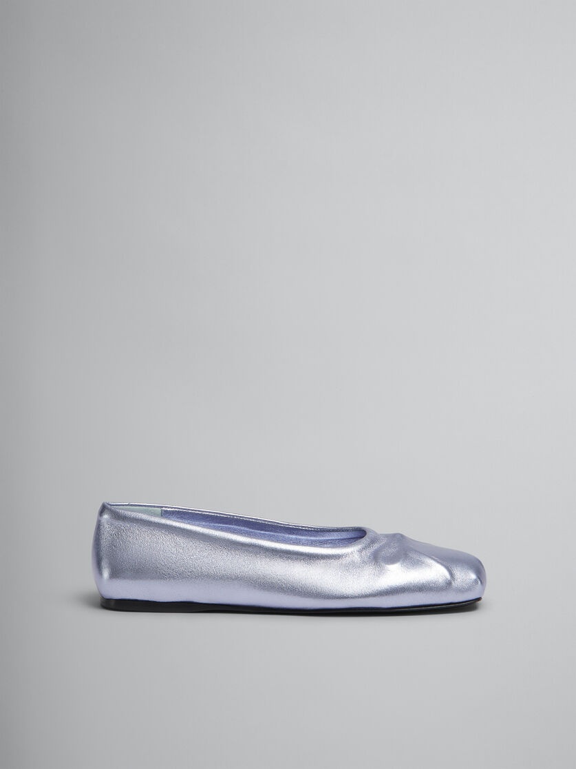 Square-toe ballet flats, crafted from soft metallic leather. Handcrafted embossed bow detail on the toe. Tonal leather lining and sole. Made in Italy MODEL BAMS004700PR69500B21 COMPOSITION Upper: 100% Ovine Leather - Lining: 100% Ovine Leather - Inside: 100% Ovine Leather - Sole: 100% Calf Leather