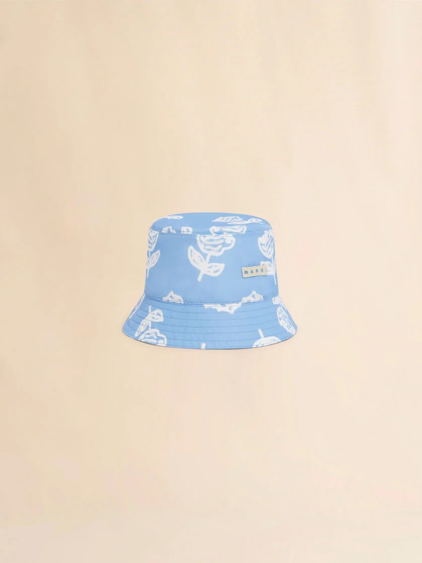 Bucket hat made from technical taffeta. Printed with a stencil-effect rose motif, inspired by the works of artists Slawn and Soldier. Embroidered Marni label stitched onto the front. Cotton lining. Made in Italy MODEL CLMC0055XUUTP796SRB50