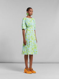 LIGHT GREEN POPLIN GATHERED DRESS WITH PARADE PRINT