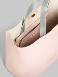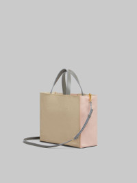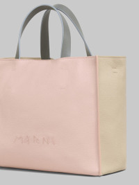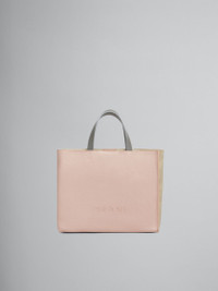 LIGHT PINK AND BEIGE LEATHER MUSEO SOFT TOTE BAG WITH MARNI SYMBOL EMBROIDERY