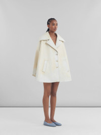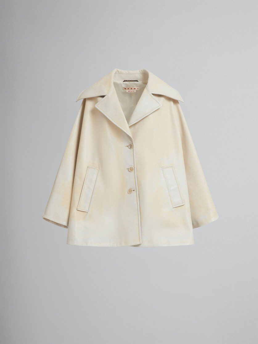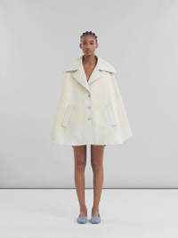 Short cape made from calfskin leather. Wide flared silhouette with large lapels and welt pockets. Fully lined. Single-breasted button closure. Handcrafted Marni Mending embroidery on the shoulder. Made in Italy MODEL CPMX0244SUULV88000Y02 FIT The model is 5' 10''. The model is wearing size 40 IT. COMPOSITION 100% PBV