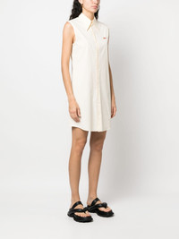 logo-applique sleeveless dress Marni's eclectic spirit is displayed in this sleeveless shirt dress through the multicoloured logo embellished with beads at the chest. Highlights - Cream white - Cotton blend - Applique logo - Long collar - Sleeveless - Front button fastening - Above-knee length - Curved hem Made in Italy Composition Cotton 78%, Polyamide 17%, Spandex/Elastane 5% SIZE & FIT Model measurements Height 5 ft 10 in(1.79 m) Bust/Chest 33.07 in(84 cm) Hips 35.82 in(91 cm) Waist 24.01 in(61 cm) Washing instructions Hand Wash