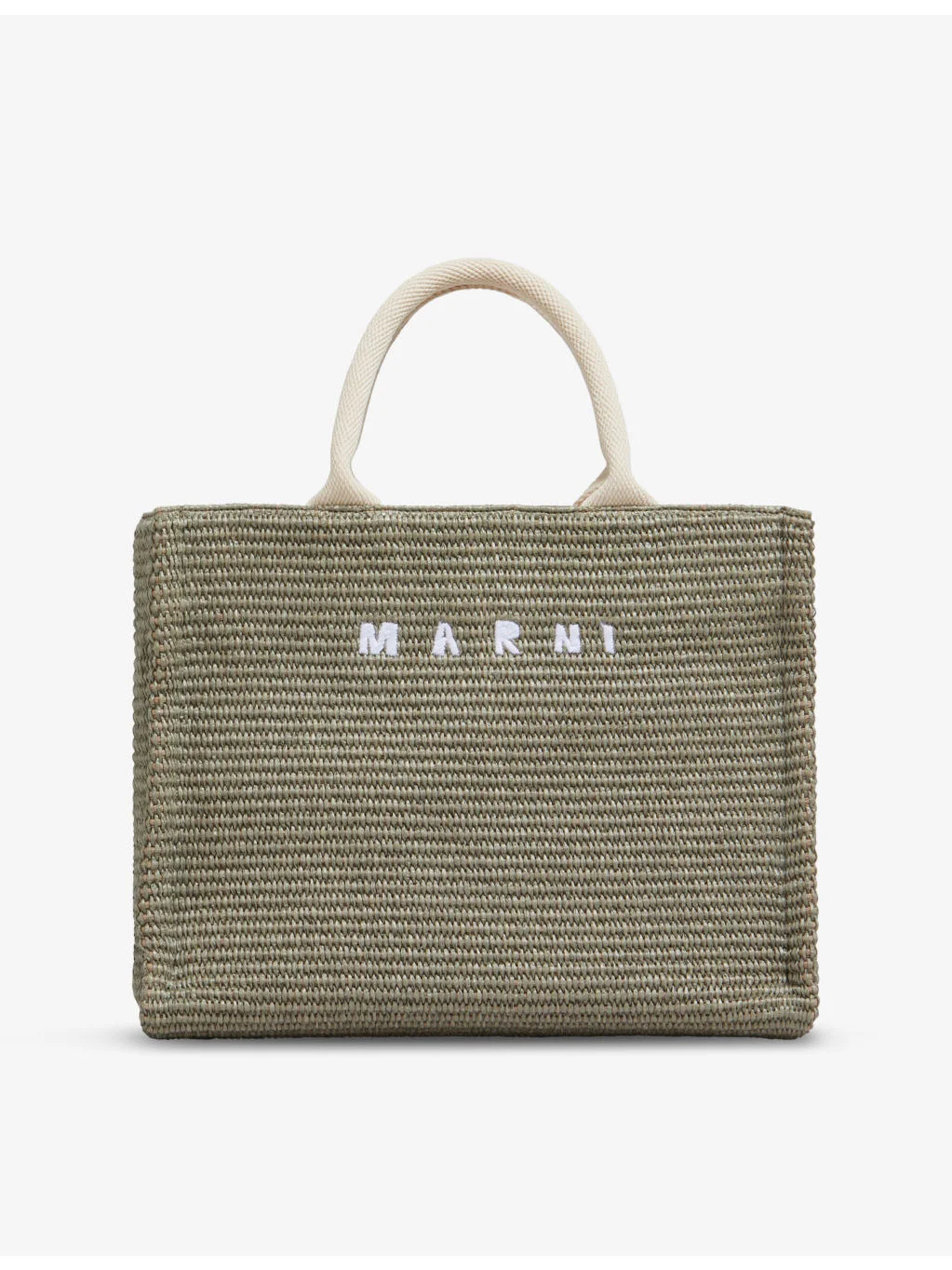 PRODUCT DETAILS - Marni cotton-blend tote bag - 52% cotton, 48% polyamide - Open top with pressed stud closure - Structured shape, double top handles, shoulder strap, brand text embroidery at front, one main compartment, internal zip pocket, raffia-effect design - Height 24cm, width 32cm, depth 14cm - Wipe with a clean, dry cloth Ref: R04415360