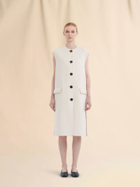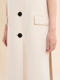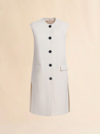 Longline sleeveless felt jacket, made from a double-face virgin wool and cashmere blend. Straight fit with dropped shoulders, side slits and round neck. Flap pockets and oversized buttons. Hand-embellished with Marni mending stitching and logo. Made in Italy MODEL GLMA0089KSUTWA2100W13 COMPOSITION 90% WVW 10% WSW