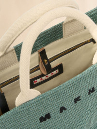 East-West small tote bag in weaved fabric. Two sets of handles in cotton ribbon, short for hand carry, long for shoulder carry. Fabric Lining with zipped pocket. Palladium Hardware. Embroidered Marni logo on the front. Made in Italy MODEL SHMP0077U0P386000V54 COMPOSITION Body: 52% Cotton 48% Polyamide-Nylon - Contrast: 97% Cotton 3% Polyester - Lining: 100% Cotton - Contrast: 100% Calf Leather - Metallic Parts: 100% Brass