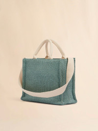 GREEN-COLOURED RAFFIA-EFFECT SMALL TOTE BAG