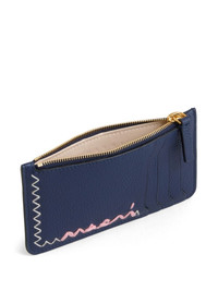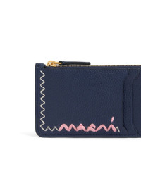 logo-embroidered wallet Highlights - Navy blue - Calf leather - Grained texture - Embroidered logo to the front - Whipstitch detailing - Zip-fastening compartment - Card slots - Debossed internal logo Made in Italy Composition Outer: Calf Leather 100%, Polyester 100%, Cotton 100%, Brass 100%, Zamak 100% Lining: Sheepskin 100%, Viscose 100% SIZE & FIT Measurement LENGTH 5.11 in(13 cm) WIDTH 2.75 in(7 cm)