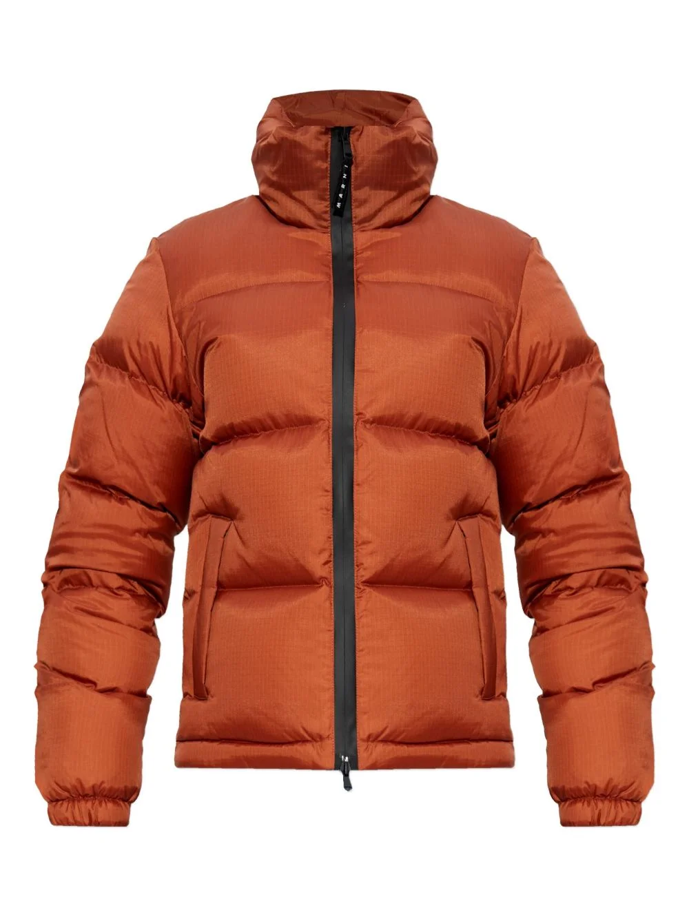 logo-embroidery puffer jacket Highlights - Brown - Logo detail - Zip fastening - Long sleeves Imported Composition Outer: Polyamide 100% Lining: Polyamide 100%, Down 100%, Feather 100% Washing instructions Read Manufacturer Guidelines