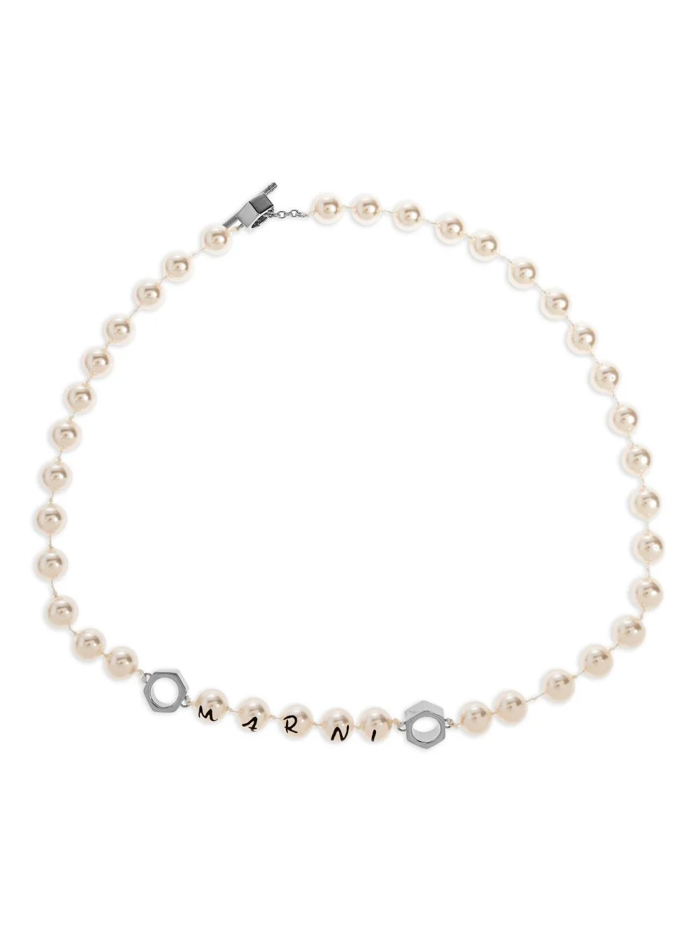 logo-lettering necklace Highlights - White - Pearl detailing - Lettering pendant - Silver-tone hardware - Toggle fastening - Pearls should be the last thing that you put on in the morning and the first thing you take off at night. avoid contact with perfumes or creams, and simply wipe with a soft cloth to clean. Made in Italy SIZE & FIT Measurement TOTAL LENGTH 22.04 in(56 cm)