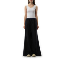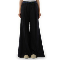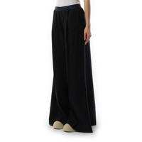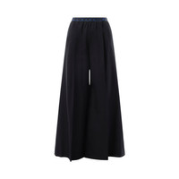 Expertly crafted from high-quality wool, these Flared Wool Trousers in Blublack are the perfect blend of style and comfort. Featuring a flattering flare silhouette, these trousers will elevate any look while keeping you warm on chilly days. - Composition: 100% Wool - Elasticated logo waistband - Slip pockets to the sides - Knife-pleat design - Wide leg Model is 175 cm and wears size 40 SKU: PAMA0428U2TW839 00B99