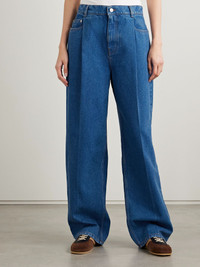 Marni's jeans are designed with sharp pleats that give them a subtle tailored feel. Cut from blue denim, they sit lower on the waist and have relaxed wide legs. Wear yours with everything from basic tees to collared shirts. Size & Fit - Fits true to size, take your normal size - Low-rise, cut for a wide-leg fit - Mid-weight, non-stretchy denim - Model is 180cm/ 5'11" and is wearing an IT 40 Model measurements: - Bust: 79cm/ 31" - Waist: 61cm/ 24" - Hip: 89cm/ 35" Details & Care - Blue denim - Button and concealed zip fastening at front - 100% cotton; pocket lining: 65% polyester, 35% cotton - Partially lined - Machine wash