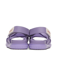 Buffed leather and mesh sandals in purple. · Open toe · Criss-crossing straps at vamp · Logo patch at velcro slingback strap · Molded leather footbed · Rubber platform midsole · Treaded rubber sole with jute detailing · Silver-tone hardware · Platform: H1.5" Supplier color: Light wistaria Upper: leather, textile. Sole: rubber. Made in Italy 241379F124013