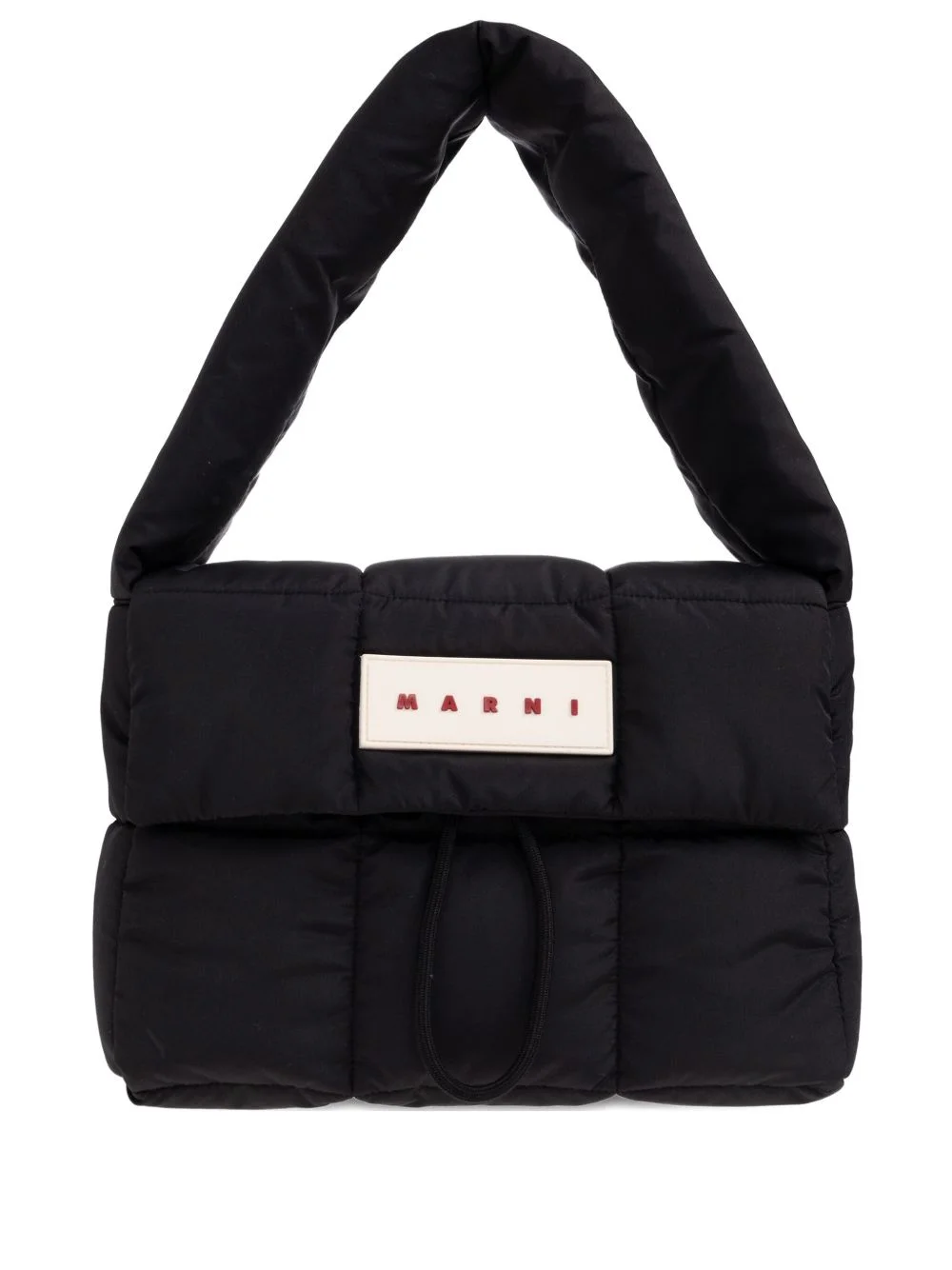 logo-patch shoulder bag Highlights - Black - Quilted design - Logo plaque - Drawstring fastening Made in Italy Composition Outer: Fabric 100% SIZE & FIT Measurement DEPTH 3.54 in(9 cm) HEIGHT 7.08 in(18 cm) WIDTH 11.02 in(28 cm)