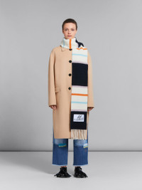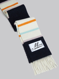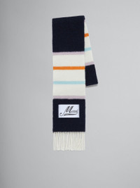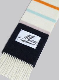 Striped scarf knitted from a brushed alpaca and wool blend. Embellished with a maxi Marni label and tassel trims. Made in Italy DETAILS COMPOSITION Primary Fabric: 60% Alpaca Woven 25% Wool Woven 15% Polyamide Woven