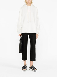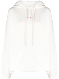 logo-print cotton hoodie Marni puts its stamp on the classic drawstring hoodie with this style. It’s crafted from white cotton and detailed with contrast logo lettering at the front. Highlights - White - Cotton - Logo print to the front - Drawstring hood - Long sleeves - Straight hem Imported Composition Cotton 100% SIZE & FIT Model measurements Height 5 ft 10 in(1.79 m) Bust/Chest 31.49 in(80 cm) Hips 35.03 in(89 cm) Waist 23.62 in(60 cm) FittingInformation Designed for an oversized fit, offering additional room throughout Made from a midweight non-stretch fabric, this piece offers minimal elasticity when worn This piece fits true to size – take your usual size