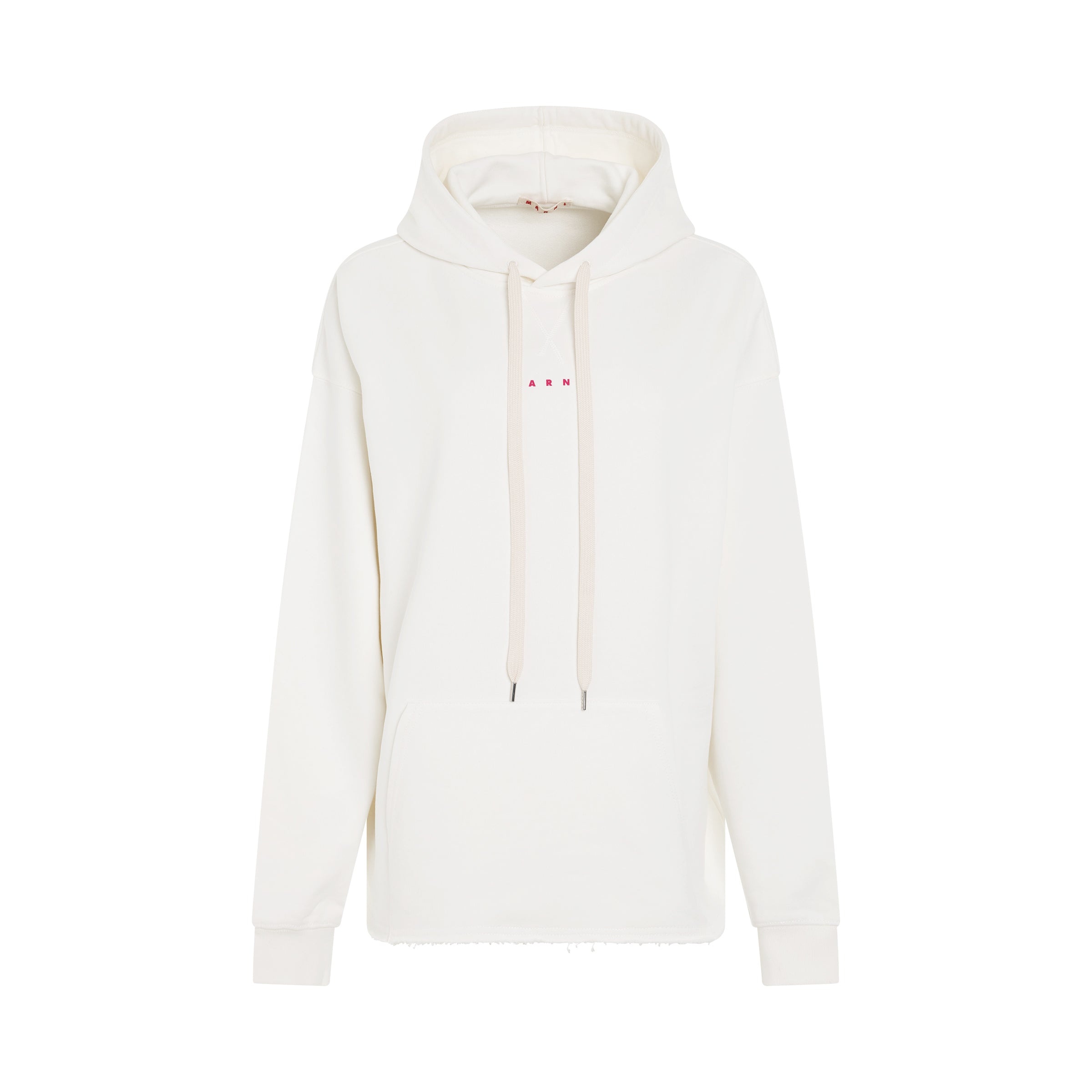 Keep your style top-notch with the Small Logo Hoodie in White! This hoodie is perfect for chilly days, with a comfy cotton-poly blend that you won't want to take off. The stylish small logo detail adds just the right touch of fashion flair. - Composition: 100% Cotton - Slouchy drawstring design - Raw hem - Lettering print on the chest - Long Sleeve - Relaxed fit SKU: FLJE0176P1USCU87 LOW02
