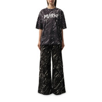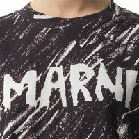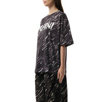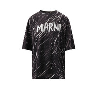 Made with high-quality materials and featuring a unique, hand-drawn logo design, this t-shirt is both comfortable and eye-catching. The perfect choice for those who want to make a bold statement with their fashion. - Composition: 100% Cotton - Abstract pattern print - Crew neck - Scribble logo print to the front - Short sleeves - Straight hem Model is 175 cm and wears size 40 SKU: THJET49P08USS018 CRN99