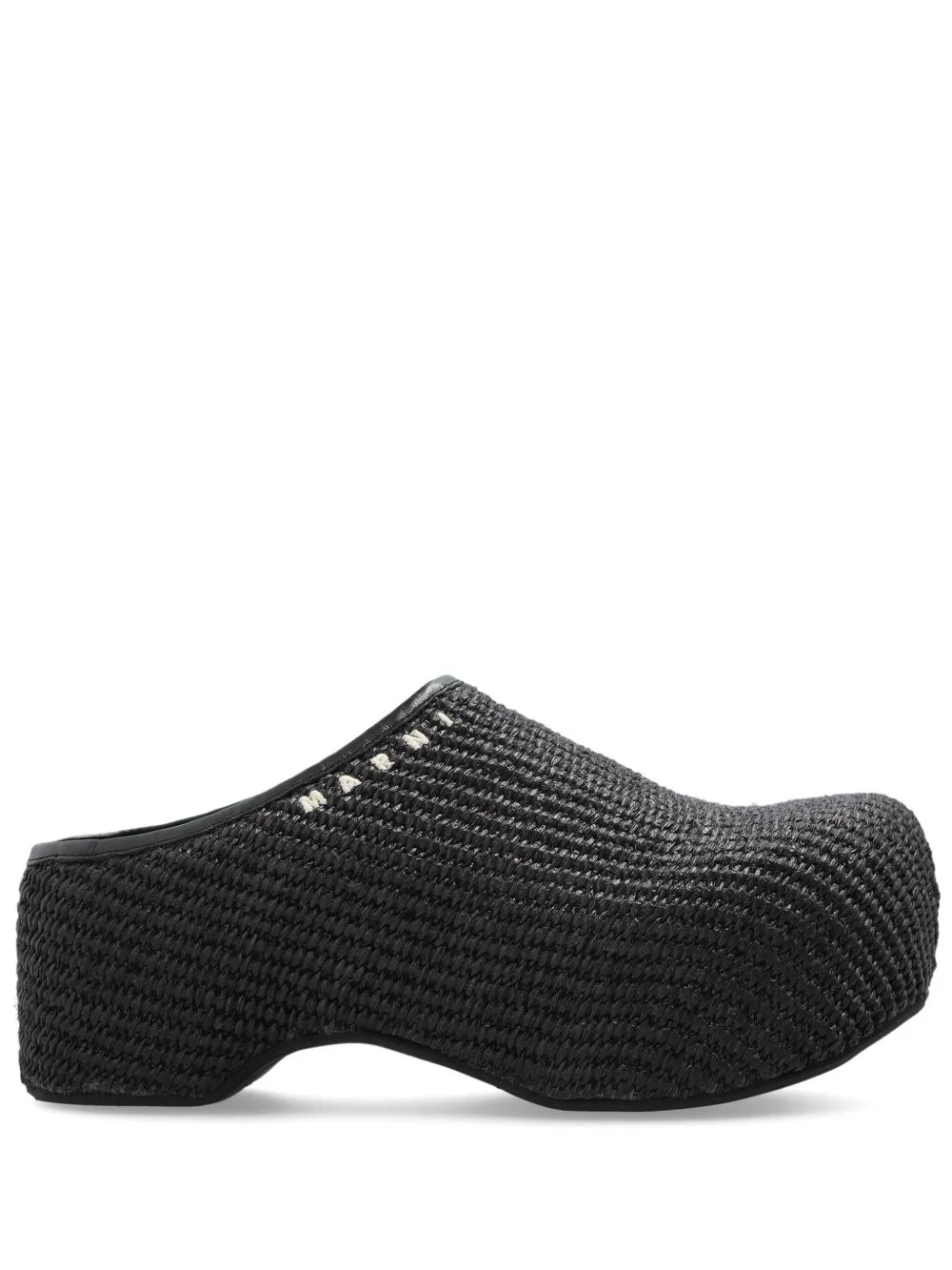 logo-print mules Highlights - Black - Slip-on style - Mid heel - Branded footbed - Round toe Made in Italy Composition Outer: Raffia 100% Sole: Rubber 100% Lining: Fabric 100%