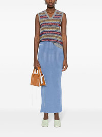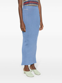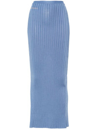 jacquard-logo ribbed maxi skirt Highlights - Opal blue - Stretch-design - Chunky ribbed knit - Jacquard logo motif - Ribbed waistband - Rear slit - Calf-length - Straight hem - Unlined Made in Italy Composition Viscose 92%, Polyamide 7%, Elastane 1% SIZE & FIT Model measurements Height 5 ft 10 in(1.78 m) Bust/Chest 31.49 in(80 cm) Hips 37 in(94 cm) Waist 23.62 in(60 cm) FittingInformation This maxi-length skirt is intended to be worn just below the waist The elasticated waist allows for a comfortable fit Made with a midweight knit, this piece offers some stretch This piece fits true to size – take your usual size