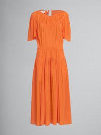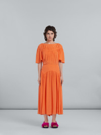 Long dress with short sleeves. Drawstrings on neckline and body. Teardrop neckline. Regular fit. Made in Italy DETAILS COMPOSITION Primary Fabric: 100% Silk Woven