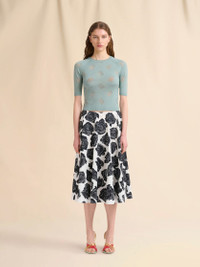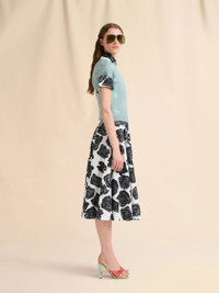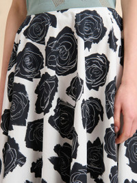 Midi skirt made from organic cotton poplin. Printed with this season's Luna black and white rose pattern, created using a special scraping technique on wet paint. Flared silhouette. Invisible back zip closure. Made in Italy MODEL GOMA0745A0UTC520LUW01 COMPOSITION Primary Fabric: 100% Cotton Woven