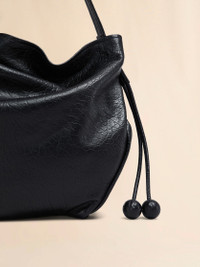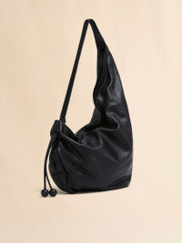 Large crossbody Hobo bag cut from nappa leather with a natural grain. The soft shape has an asymmetric silhouette with an adjustable drawstring strap with long laces that have two tonal leather baubles at the end. Zip closure. Made in Italy MODEL SBMP0217U0P803300N99 COMPOSITION Body: 100% Ovine Leather - Lining: 100% Ovine Leather - Metallic Parts: 100% Plastic - Metallic Parts: 100% Polyamide-Nylon - Metallic Parts: 100% Zama