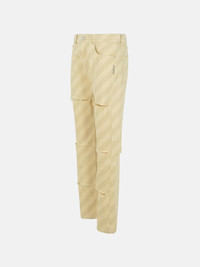 Manufacture code: PAJD0520Y0U SCX37 STW08 Retail code: PAJD0520Y0U SCX37 STW08 Made of denim, slight contrast stripe pattern, belt loops, button closure and hidden zip, five-pocket style, decorative cuts, logo back patch