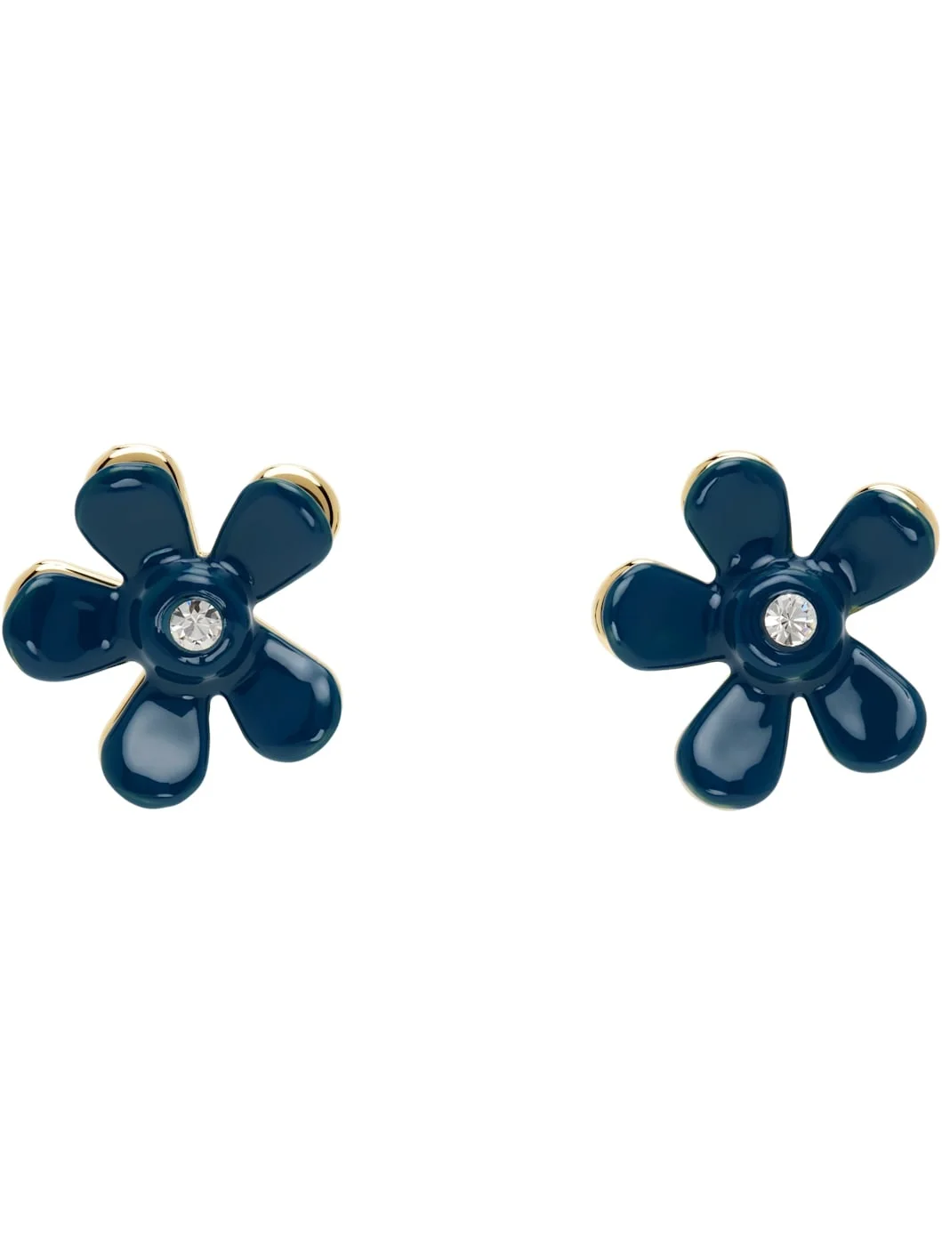 Pair of graphic stud earrings in gold tone. · Blue enamel and bezel-set crystal at face · Logo engraved at back face · Post-stud fastening · H1" x W1" Supplier color: Blue china Metal, glass, enamel. Made in Italy 251379F022013