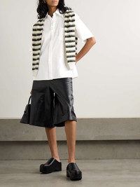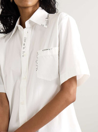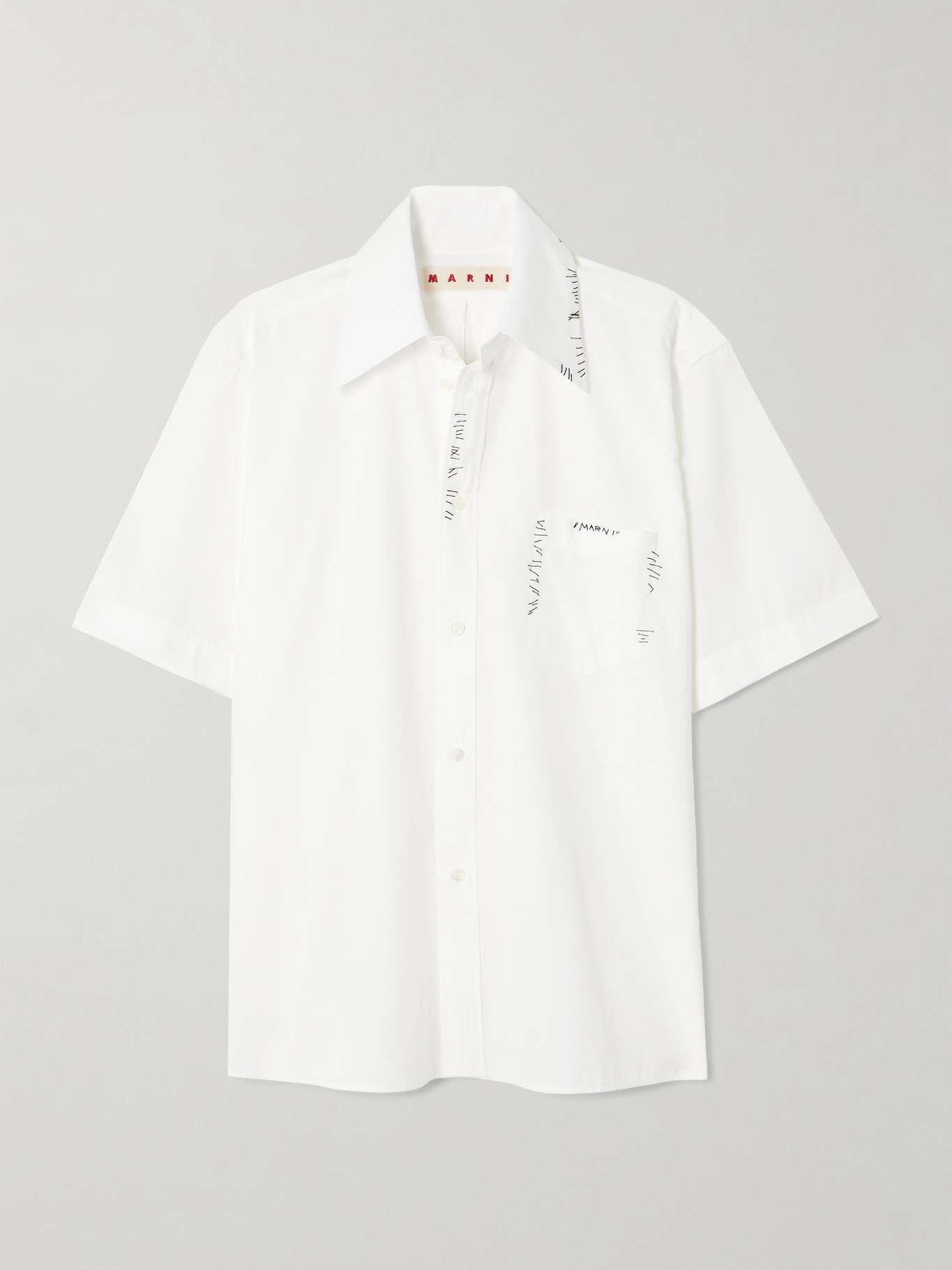 EDITORS'NOTES Marni's shirt is elevated with visible stitching for a contemporary spin. It's made from crisp cotton-poplin for a boxy fit and has three-quarter sleeves. The chest pocket is embroidered with the brand's namesake. SIZE & FIT Model measurements: - Fits true to size, take your normal size - Designed for a boxy fit, cut to be worn loose - Mid-weight, non-stretchy fabric - Model is 175cm/ 5'9" and is wearing an IT 40 - Bust: 81cm/ 32" - Waist: 64cm/ 25" - Hip: 89cm/ 35" DETAILS & CARE - White cotton-poplin - Button fastenings through front - 100% cotton - Dry clean