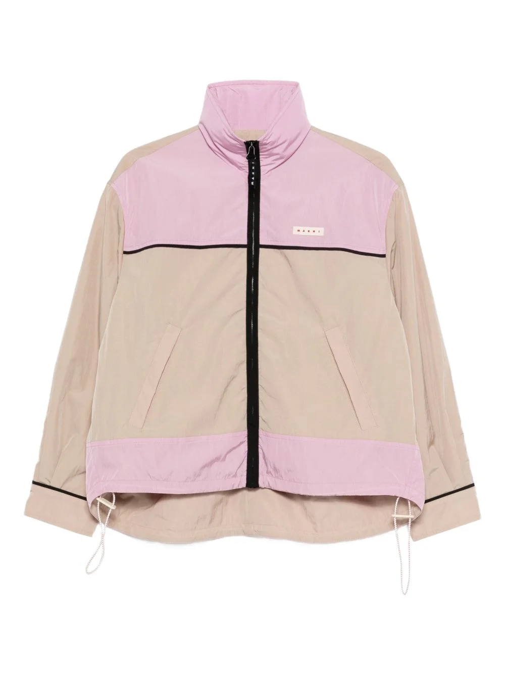 colourblock zip jacket Highlights - Beige and powder pink - Colourblock design - High neck - Front zip fastening - Drawstring hem - Long sleeves Made in Italy Composition Outer: Polyamide 100% Lining: Polyamide 100% Washing instructions Machine Wash