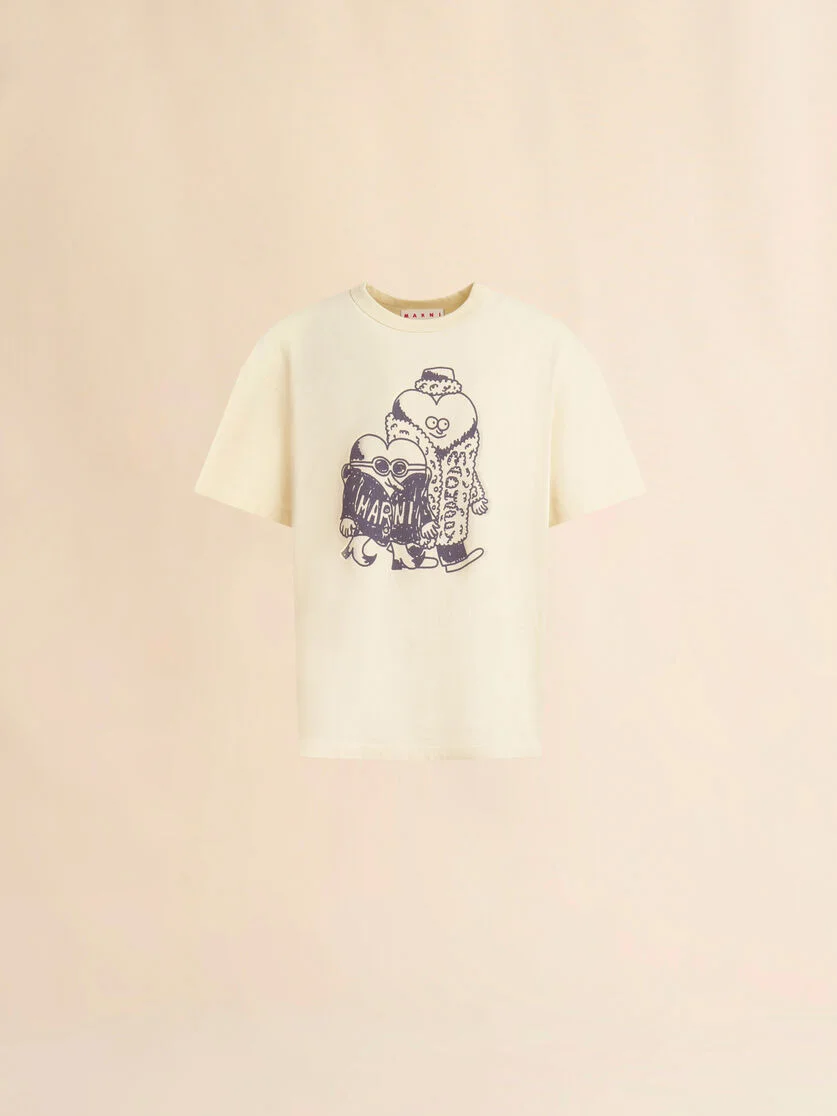 MARNI + MADHAPPY CREAM COTTON T-SHIRT WITH HEART GUYS PRINT