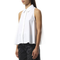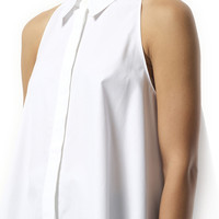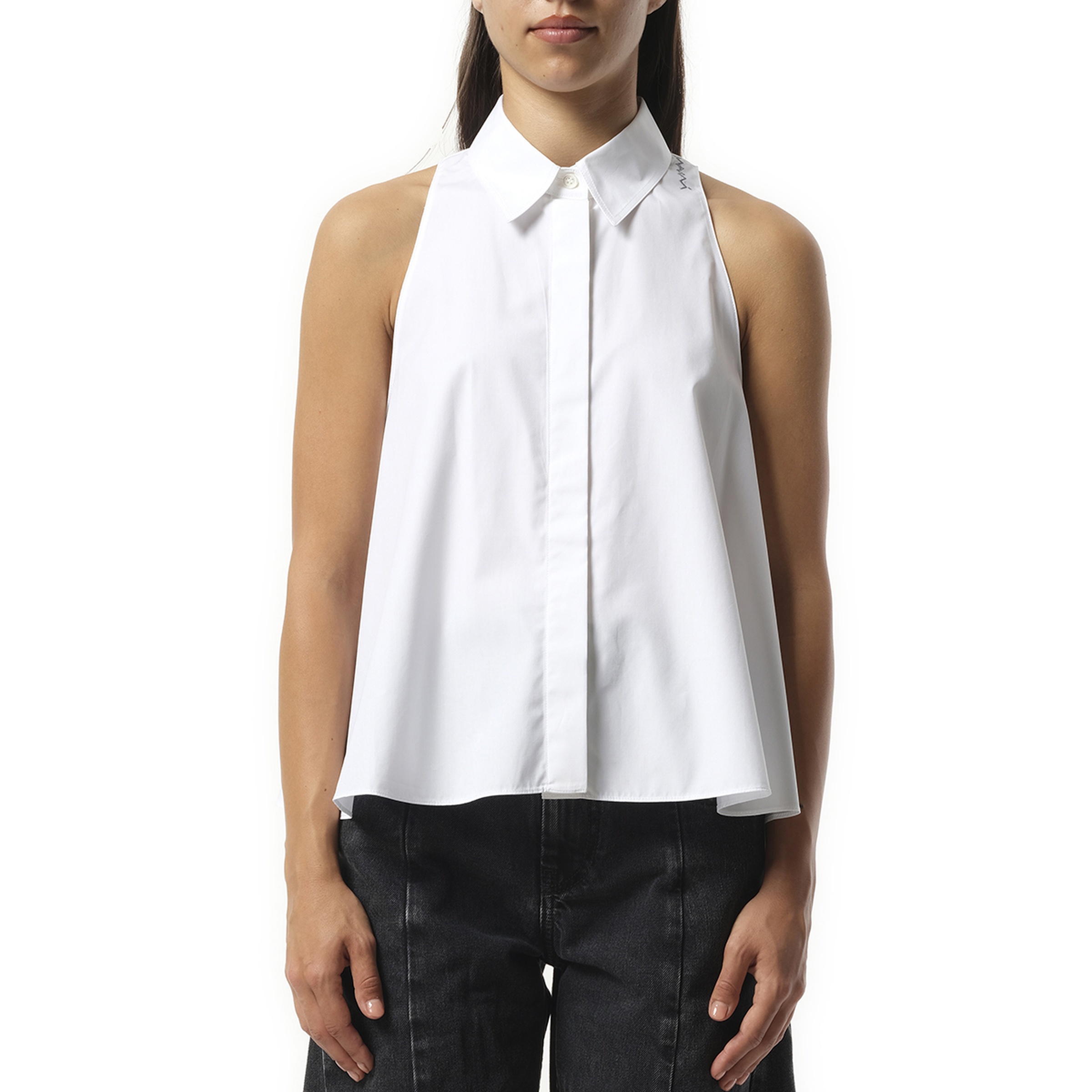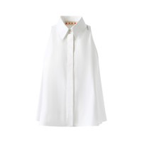 Marni's Sleeveless A-line Shirt in Lily White combines a minimalist design with a flattering A-line silhouette. Crafted from light, breathable fabric, it offers a relaxed fit perfect for warm weather. A stylish and comfortable choice for a chic, effortless look. - Composition: 100% Woven Cotton - A-line cut for a flattering fit - Sleeveless design for warm-weather comfort Model is 175 cm and wears size 38. SKU: CAMA0612S0UTC223 00W01